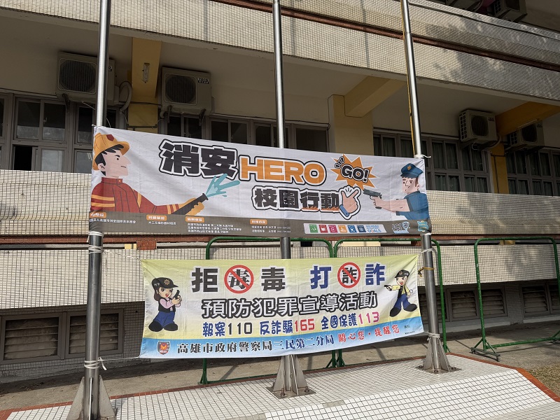 【記者王培興/高雄報導】高雄市政府警察局少年警察隊於昨(22)日與高雄市博愛青商會、三民二分局、高雄市消防局大昌分局共同舉辦「消安HERO校園行動GO」體驗活動,假高雄市三民區光武國小舉行,邀請多名學生走入警察日常,透過一系列有趣、生動的情境遊戲,讓孩子在遊戲中學習反毒及消防安全等重要觀念,深受學生的熱烈參與。