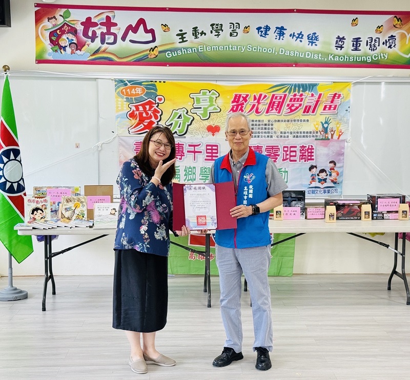 【記者李佳燁/高雄報導】為點亮偏鄉學童的夢想,救國團高雄市三民區團委會於10月1日走進高雄市大樹區姑山國小,舉辦「愛分享.聚光圓夢計畫」公益活動,並結合高雄市團友會推動「書香傳千里.悅讀零距離」贈書計畫。此次活動旨在透過實際行動匯聚社會各界愛心,將希望的光芒帶進校園,陪伴偏鄉學童在學習與生活中成長。