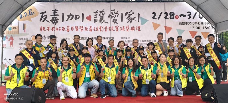 「反毒1加1 讓愛1家1」親子共好反毒市集登場 創意短影音競賽掀起世代拒毒行動 2026/02/28 - 張永漢報導 - 【記者張永漢/高雄報導】在毒品樣態日益翻新、誘惑手法層出不窮的今日,家庭成為守護孩子最重要的第一道防線。社團法人台灣無毒世界協會於2月28日至3月1日在高雄市文...