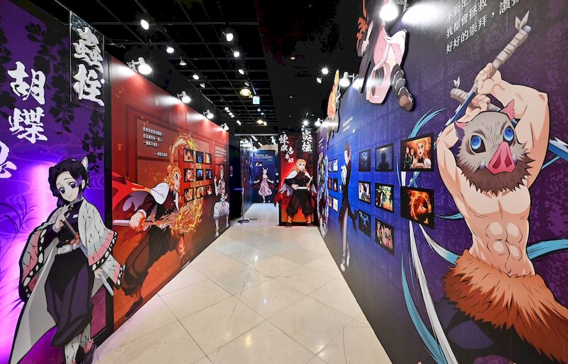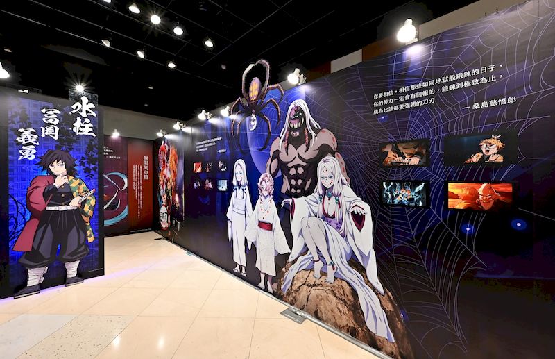 展區集結《竈門炭治郎立志篇》、《無限列車篇》、《遊郭篇》、《刀匠村篇》及《柱訓練篇》各季TV動畫的動人台詞與精采畫面,鬼殺隊最高戰力九柱的等身立牌,無限列車篇中炭治郎使出「火之神神樂 碧羅之天」斬向魘夢脊骨的經典戰鬥場景,邁向無限城展區中鏡面交錯的反射身影,以及無慘、黑死牟、童磨、猗窩座、鳴女齊聚,以無限城進行設計的商售區,絕對都是攻佔粉絲手機記憶體的必拍畫面。