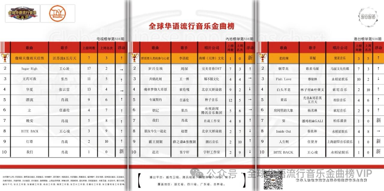 由星推官「許雅涵」長期擔任代言推廣的「全球華語流行音樂金曲榜」在「劉德華」、「王心凌」,「任嘉倫「,「張雲雷」,「肖戰」,「蔡依林」等新歌助陣下,在新浪微博超活已破8.3億灠量,同時並登上受眾達2.3億多各個省份播出的旅遊衛視頻道播出。