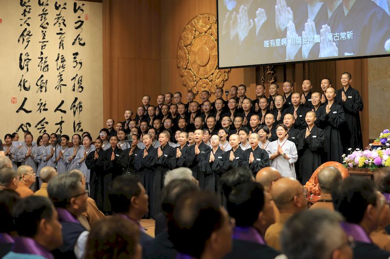 讚頌會中,佛光山叢林學院學生獻唱〈星雲〉、〈十修歌〉,菲律賓悉達多家族歌詠〈茉莉花〉、〈佛陀您在哪裡〉,以歌聲追思大師慈心悲願,場面感人。