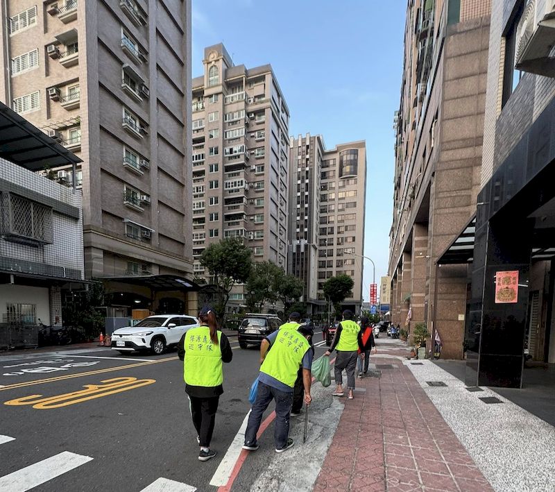 此次行動中,保源建設房屋修繕建設公司多位員工在下班後主動投入志工行列,頂著疲憊仍彎腰清掃街道,展現企業回饋社會、關懷在地的實際行動。