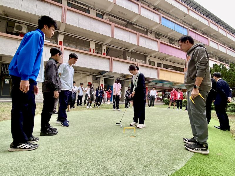 在課程體驗方面,學校規劃多元而專業的學習活動,包括由體育組長楊竣貿老師指導的高爾夫球推桿體驗,培養學生專注力與肢體協調;以及由連續多年指導學生參與科展與科學園遊會屢獲佳績的設備組長黃美華老師帶領的科學實作課程,透過茶包天燈、鳥笛製作與摩擦起電(靜電)實驗,引導學生實際觀察熱對流、聲音變化與靜電現象,將抽象科學概念轉化為可操作、可理解的學習歷程。