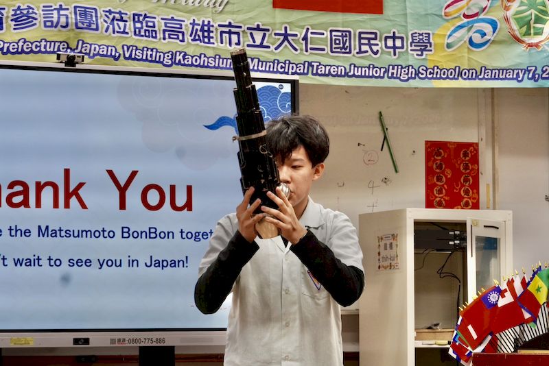 在學生交流與展演活動中,日本學生介紹松本市城市文化特色,並帶來小提琴演奏、芭蕾舞表演及充滿節慶氛圍的「松本Bon Bon祭舞蹈」,展現松本市深厚的藝術底蘊與青春活力。連續五屆榮獲全國學生音樂比賽國樂雙特優的大仁國中,則由國樂班學生周裕勛、魏昕妤介紹學校特色,劉彥均以笙吹奏《冬獵》,鄭又寧彈奏琵琶樂曲《草原小姐妹》,以悠揚樂聲回應友誼,東方美學交織的樂音獲得現場熱烈掌聲。