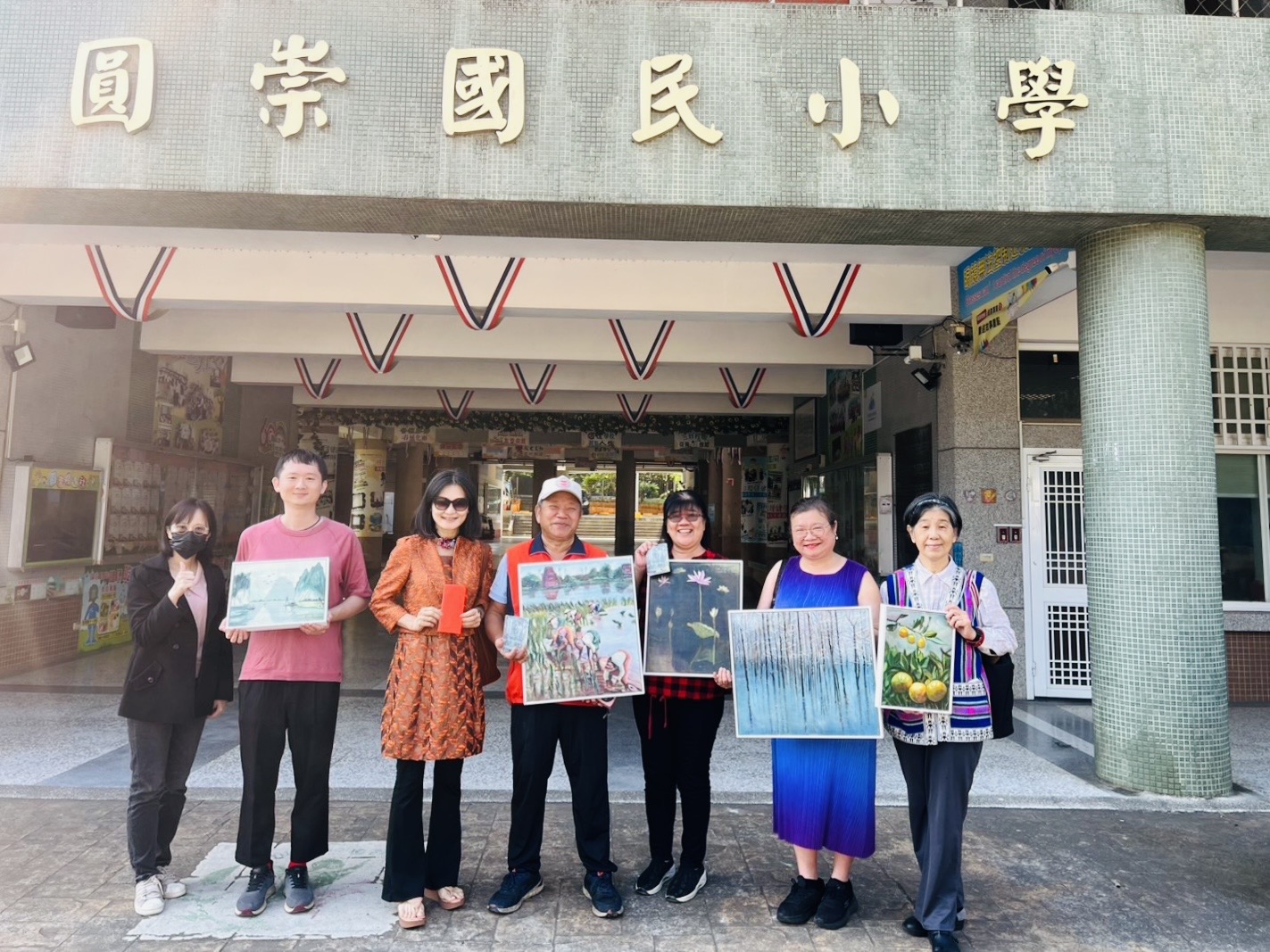 ▲藝術家胡嘉蕙以五幅精選畫作捐贈圓崇國小,支持校方推動藝術美感教育。