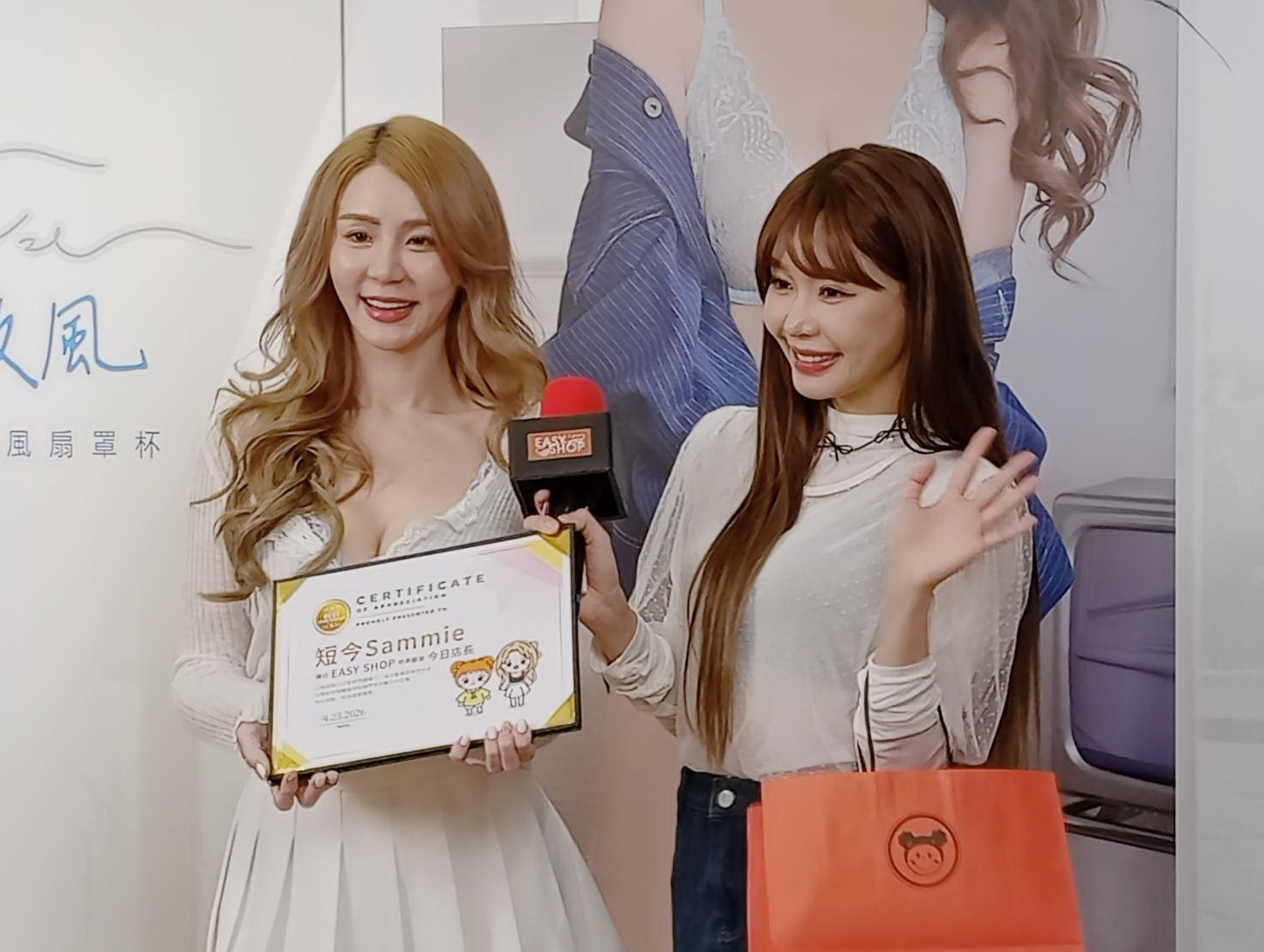 活動也驚喜加碼-同為啦啦隊女神的短今閨蜜「Yuri」前來探班,兩人在現場玩起爆笑又可愛的繪畫默契考驗;短今也從「今日店長」專業角度親自幫Yuri挑選適合款式、以及給予不同身形的內衣搭配建議、並進行產品包裝及結帳。並且不藏私分享EASY SHOP母親節最強消費攻略:包含指定款買一送一、滿額$3500折$300(買越多折越多)、滿額$5000再送不鏽鋼保鮮鍋…眾多滿額折再贈的好康優惠,「今日店長」最後更不忘提醒大家母親節活動只到5/10千萬別錯過!