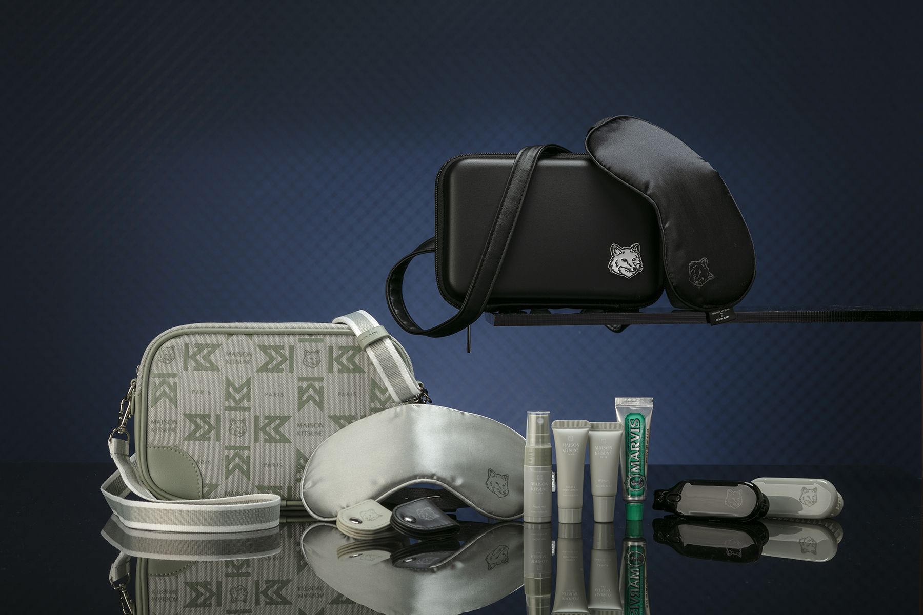 長榮航空機上服務用品不斷推陳出新,現行與時尚潮牌Maison Kitsuné專屬合作,完美契合長榮航空致力於提供國際化服務、連結全球旅客的品牌定位,首次將皇璽桂冠艙過夜包與睡衣使用同一個品牌設計,Maison Kitsuné的品牌經典元素為狐狸圖騰,睡衣以其為設計亮點,上衣繡有精緻品牌狐狸頭Logo,褲身則印有標誌性Monogram 圖騰,全套睡衣選用50%環保材質 rPET 布料製成,彰顯品牌獨特風格與細膩質感。