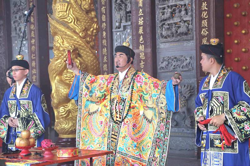 此次法會特別邀請南臺灣道教權威、臺南仁德道壇資深道士郭子聖道長主法。郭道長出身道教世家,17歲即習法,歷經25年修行,以赤腳登上36層刀梯的高難度儀式晉升正統道長,精通各式建醮科儀,包括豎燈篙、安座儀式等,是經驗豐富、年富力強的「高功」道士。法會將遵循古制儀軌,採珠砂點奏文,參與祭祀的信眾需茹素一天,種種舉措相信能達祈願者的訴求;況且吃素可減少碳排放,減緩地球暖化,也是「功德一件」。