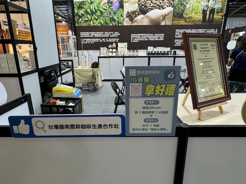 其中,「台灣圖南雲耕咖啡生產合作社」以台灣在地高山咖啡為主軸設立展售攤位,展現台灣精品咖啡的卓越品質與國際競爭力。