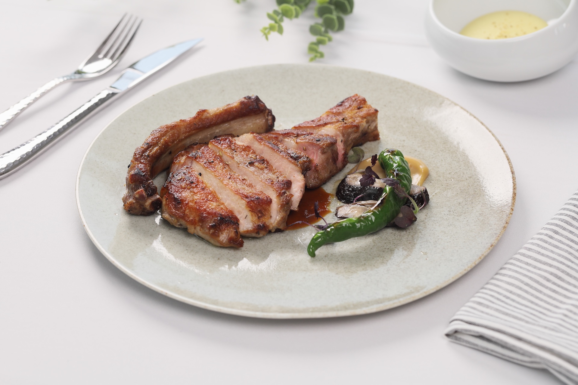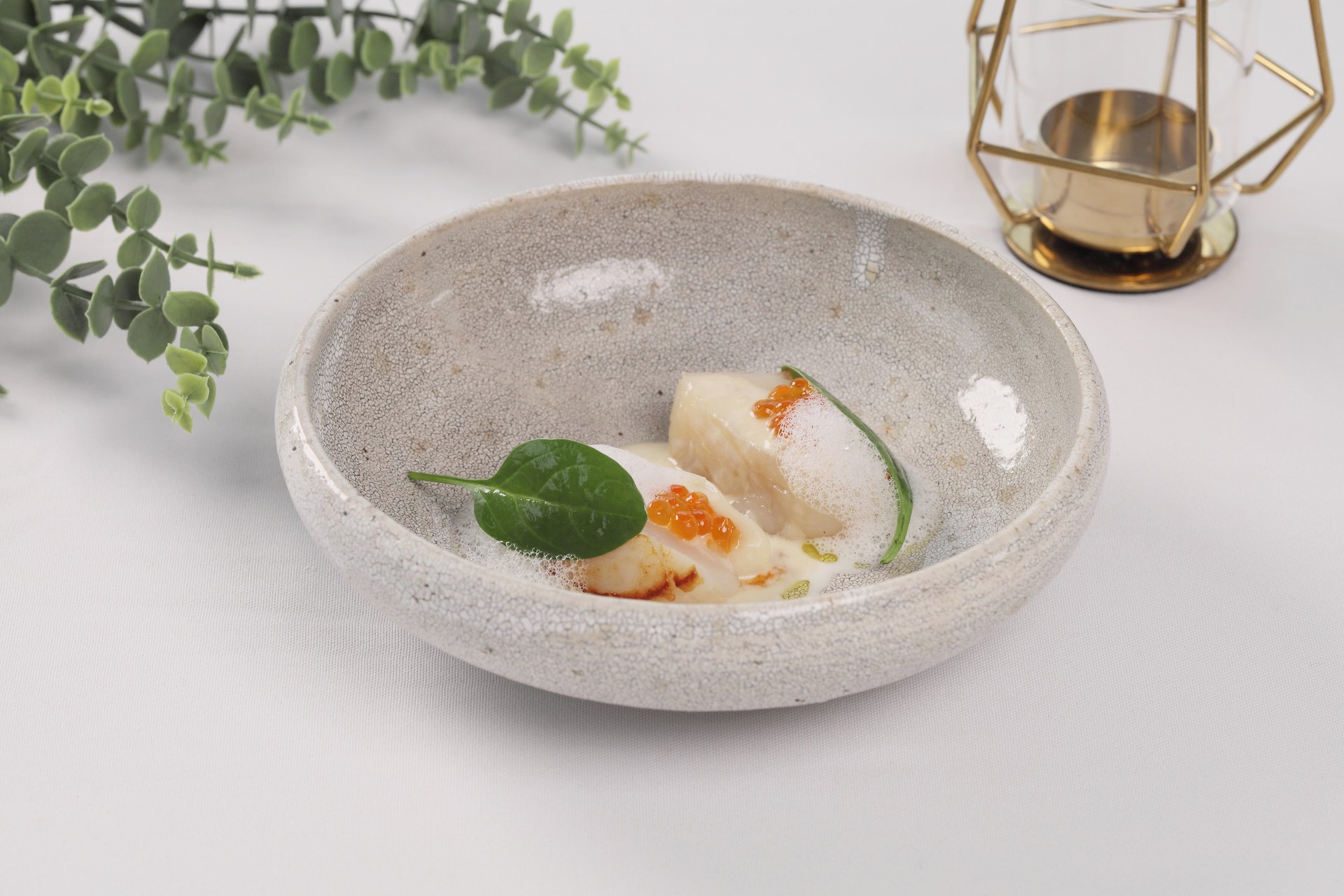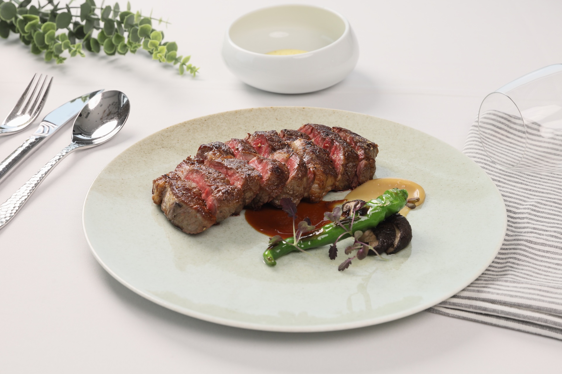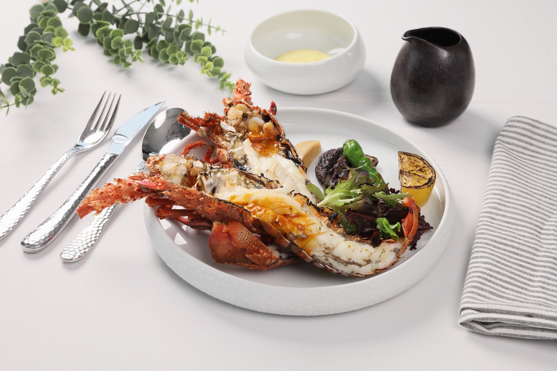 此次Fabien以法式料理思維為核心,運用細膩烹調手法與靈魂醬汁,賦予餐廳全新菜品更深層的風味表現,套餐每份1,880元+10%起。從前菜「西班牙塞拉諾風乾火腿沙拉」揭開序幕,鹹香濃郁的風乾火腿搭配爽脆生菜與清新油醋,口感輕盈開胃;湯品「櫛瓜濃湯」質地滑順細緻,帶出自然蔬菜的溫潤清甜;開胃菜「香煎北海道干貝・白酒奶油醬・鮭魚卵」,將干貝煎至外層微酥、內裡柔嫩,佐以濃郁滑順的白酒奶油醬與鹹鮮飽滿的鮭魚卵,交織出層次豐富的海味饗宴。主餐提供多達13款精選選擇,包含油花分布均勻、入口柔嫩多汁的美國頂級肋眼,肉質扎實、香氣濃厚的美國頂級戰斧豬排,以及外殼微酥、肉質鮮甜彈牙的爐烤活龍蝦,透過精準火候將食材風味發揮至極致,餐後再以精緻甜點與飲品收尾,甜香與餘韻交織,為整體用餐體驗增添優雅句點。除了套餐,亦提供單點及Fine dining客製化菜單,讓賓客在同一個空間同時享有頂級牛排與法式料理的體驗。