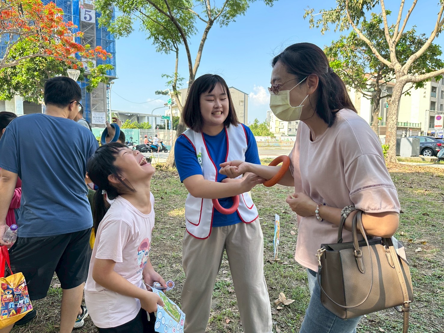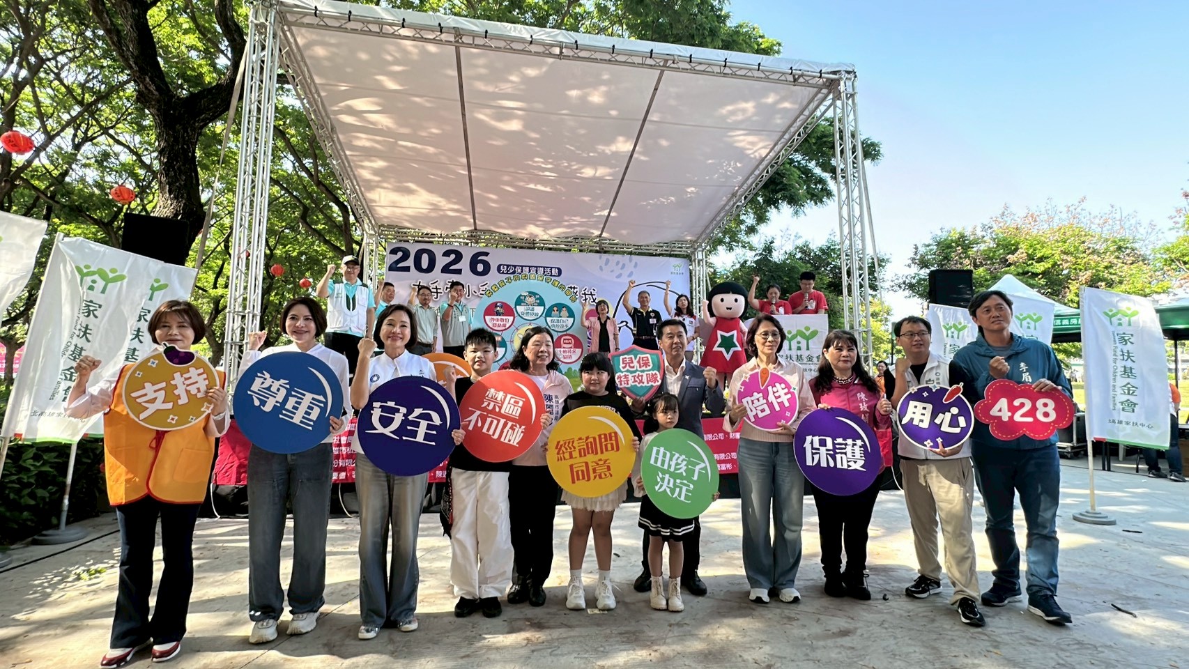 為了讓兒少提高警覺、避免陷入危險情境中,北高雄家扶中心於今(4/26)假楠梓區藍田公園舉辦2026年兒保宣導活動「大手牽小手 幸福跟著我 藍色天空下 田園護童心」,號召一千名社區親子參與,透過趣味闖關傳遞「網路安全」與「自我保護」的觀念,陪伴孩子建立清楚的數位界線,避免落入兒少性影像剝削陷阱。